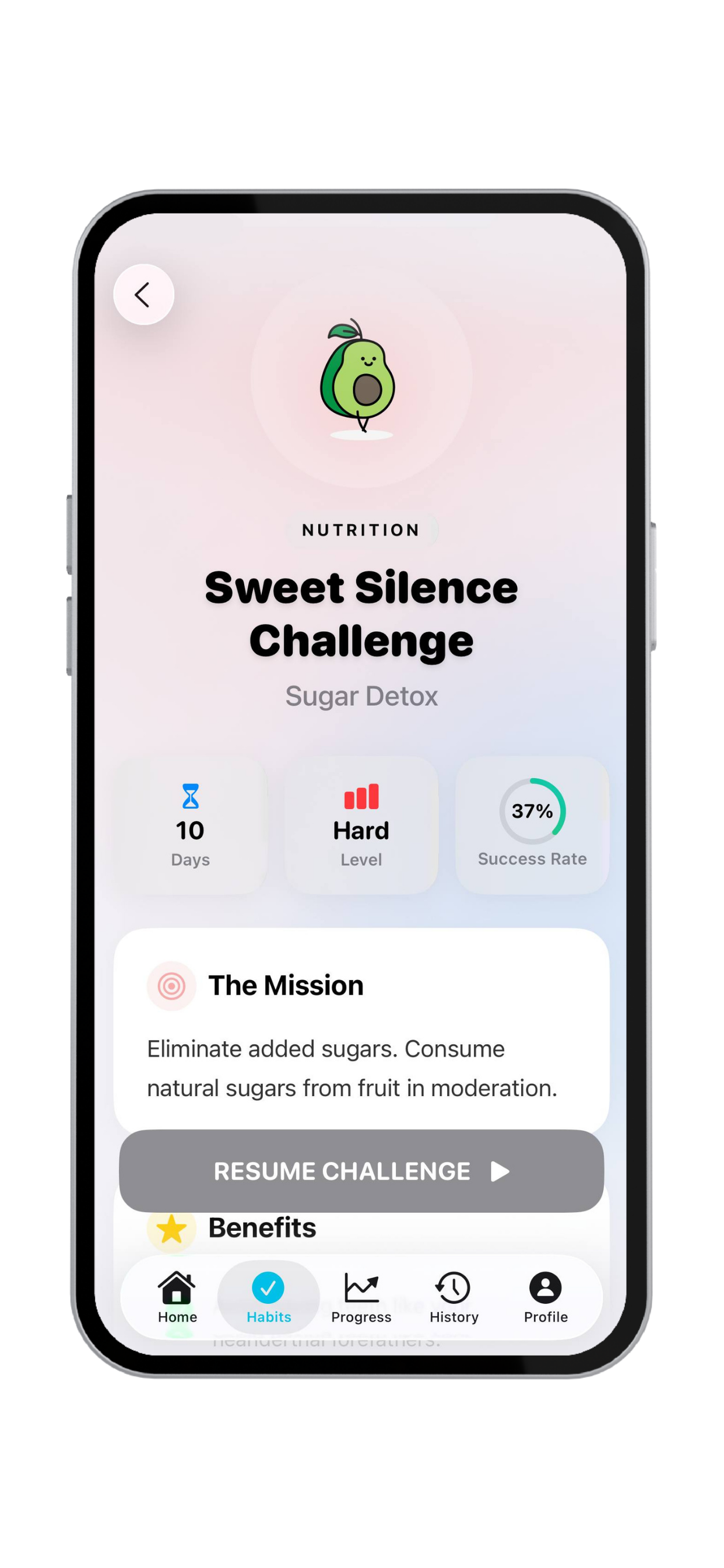 Pick from 7 categories including nutrition, sleep, cold exposure, and more. Each challenge has a clear mission, difficulty level, and daily tasks.